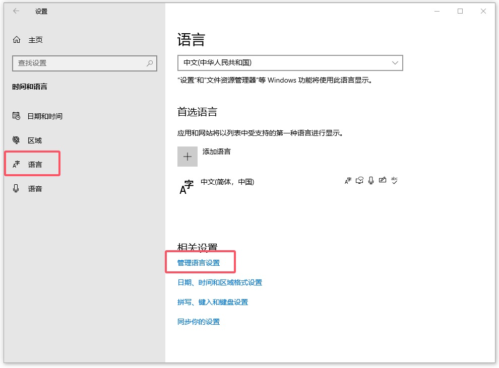 4、打開 更改系統區域設置>>選擇中文(簡體,中國)